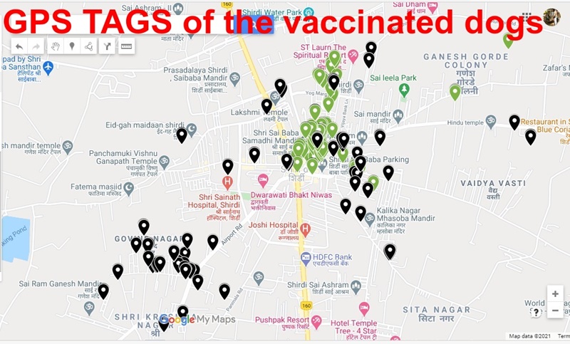 Area Covered in Shirdi with the GPS tags of the dogs who were vaccinated.