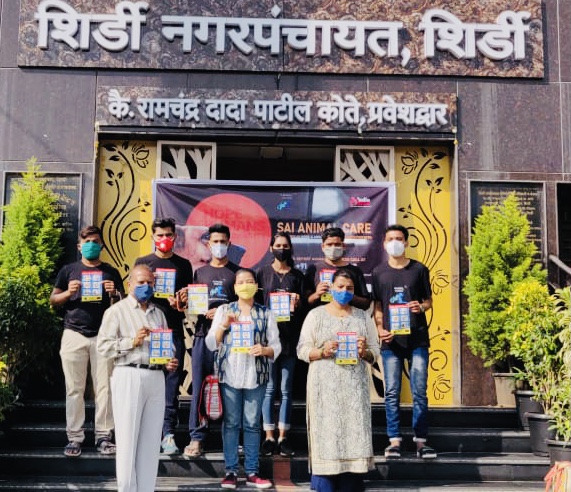 They handed out promotional flyers with the statement: »Sweets are dangerous for dogs!« and the flyers with instructions: »How to avoid dog bites«. The necessary program was also supported by CER Shirdi Nagar Panchayat and Mr. Kakasaheb Dioiphode.